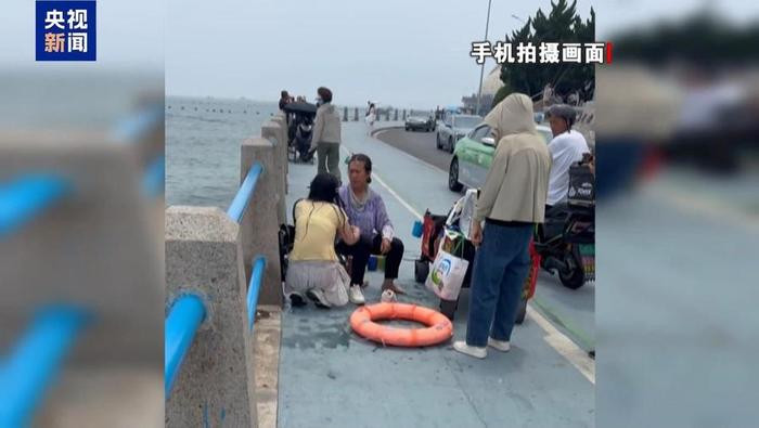 视频中,刘玉荣并没有马上跳海施救,而是先走到热心人抛下的游泳圈附近。事后刘玉荣说,那个救生圈太关键了,她虽然游泳不错,但已经当奶奶的她要在海浪里救人并不容易,借助救生圈的浮力,刘玉荣艰难地将落水者带回了岸边。